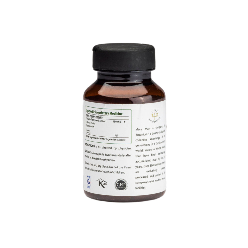 Tribulus, as per recent scientific study has confirmed the presence of Steroidal Saponins, which helps to promote male health & energy boosting. The study also shows the presence of phytosterols especially beta-sitosterols, beneficial for cardiovascular & urogenital health. Tribulus is given with other herbs as an anabolic tonic to help to gain muscle strength, to burn body fat and support as a potent testosterone booster. Gokshur, when taken regularly, helps to enhance libido & stamina, and promote Virility & Vitality. Tribulus also helps to reduce blood sugar levels by way of increasing digestive power and clearing urine sugar levels.