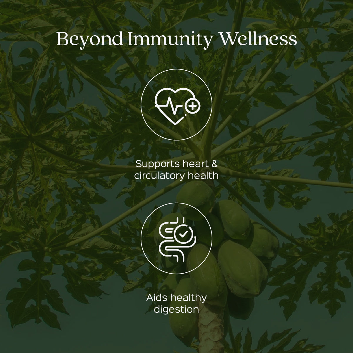 Papaya or Papaw (Botanical Name - Carica Pappaya) is a valuable tree commonly cultivated in gardens throughout India; indigenous in America. Carica papaya is cultivated for its edible ripe fruit; its juice is a popular beverage, and its young leaves, shoots, and fruits are cooked as a vegetable. Scientific studies of Papaya leaves shows presence of important nutrients such as vitamins A, B1, C and E, calories, protein, carbohydrates, calcium, phosphorus, iron for Vitality, increasing Immunity & platelets. The presence alkaloid, glucoside and enzyme called papain in papaya Leaf supports healthy blood circulation to heart muscles and aids in digestion by breaking down the proteins naturally.