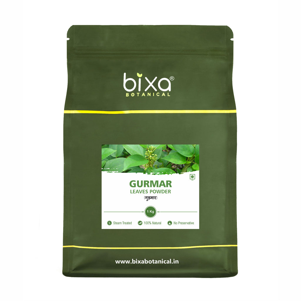 Gudmar (Bot. Name - Gymnema sylvestre) is a herb native to Asia that has being used medicinally for thousands of years in India. Accordingly to ayurveda it is called Gudmar, which literally means ‘Sugar-Destroyer’. Also if we chew Gudmar leaves, then our tongue becomes dead to Sugar taste for 1-2 hours. Gudmar helps to maintain healthy Blood sugar levels by stimulating pancreatic secretions & its function to metabolise excessive sugar. As per Bhavprakash Nighantu (Ancient Ayurvedic Text), Gudmar herb is bitter in taste, has pungent taste after digestion, with dry in properties & aggravates Vata dosha. Gudmar supports regularizing bowel movements, improving digestion, suppressing sugar cravings & healthy glucose metabolism. Gudmar or Gymnema Powder when taken with warm water early morning reduces formation of phlegm & cough in Diabetic patients. Regular intake of Gymnema Powder for a sustained period prevents ill effects of Diabetes Mellitus on human body and helps to reduce Average Blood glucose Or Glycosylated haemoglobin level (HBA1C levels). Gudmar also promotes healing diabetic wounds and repair of damaged tissues with other healing herbs. The skin tone & colour gets affected due to high sugar level, in such cases Gymnema supports to prevent skin ailments. As per Modern science & ongoing research Gudmar contains Gymnemic acids which are best Sugar-metabolizer. Gymnemic acids supports stimulation action on beta cells in pancreas, which in turn helps to maintain healthy blood sugar levels.