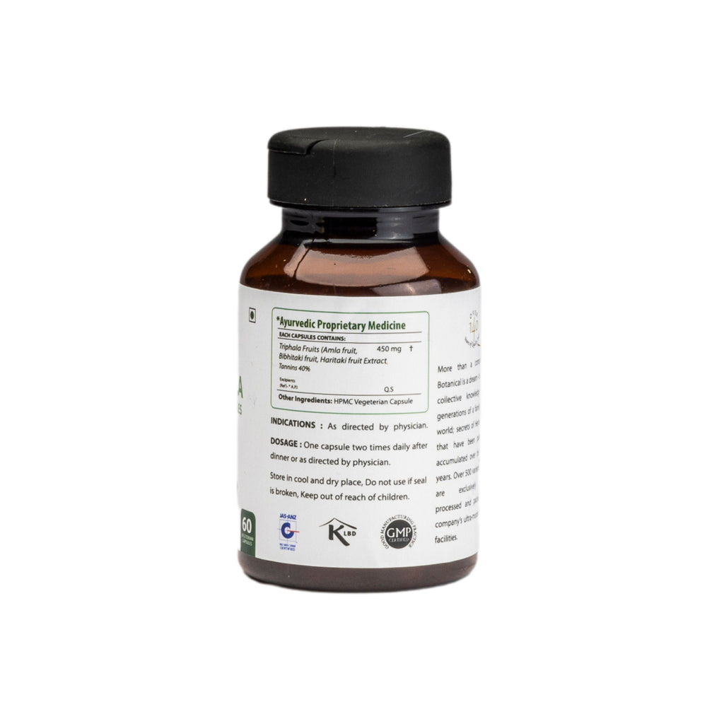 Triphala is an Ayurvedic traditional generic medicine that is popular as rasayana or the rejuvenator. Triphala is the combination of three wonderful herbs/ myrobalans - Emblica officinalis, Terminalia chebula and Terminalia belerica in equal quantity. Triphala Powder is used to balance the doshas (the elements of body and mind), especially it pacifies vitiated Kapha/pitta and supports enhancement in the process of digestion and elimination of toxins. Triphala Extract supports laxative and carminative action, which helps to relieve constipation, flatulence, gas, and abdominal distension.