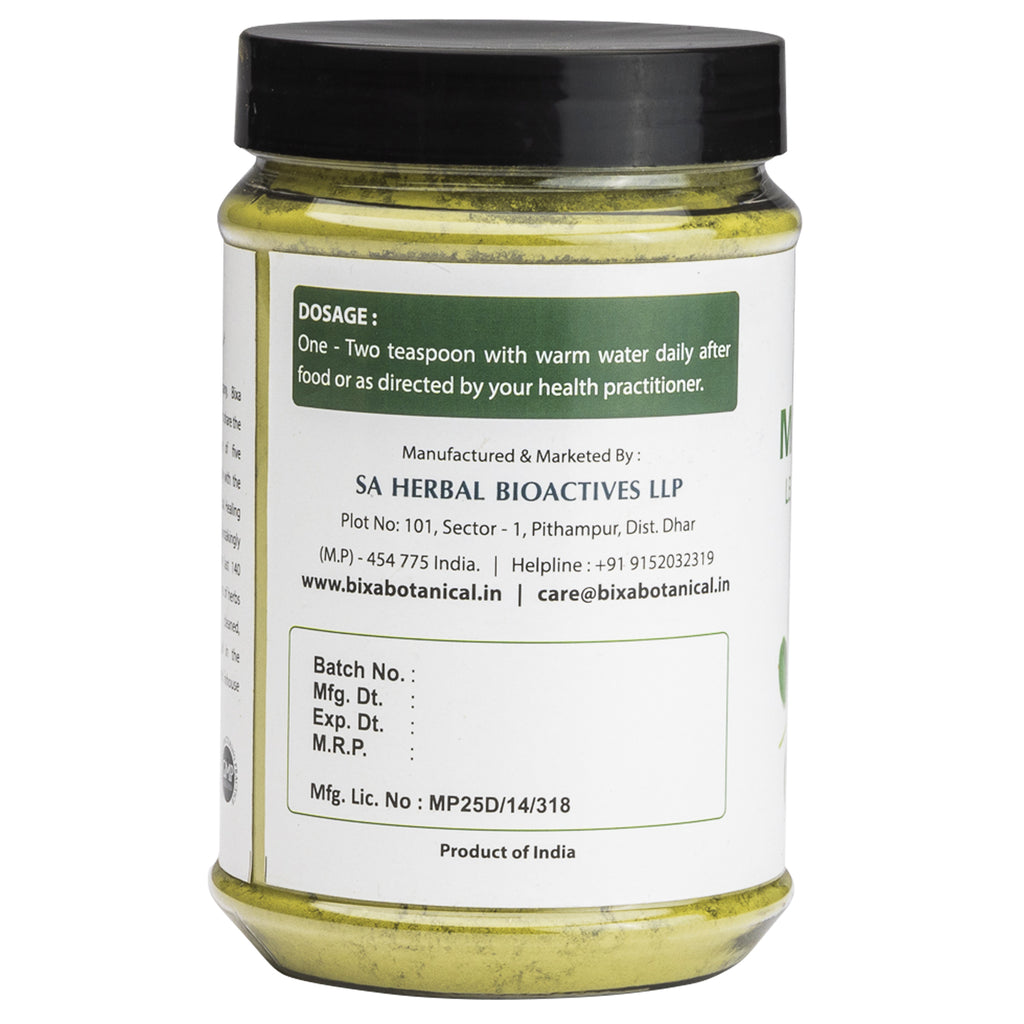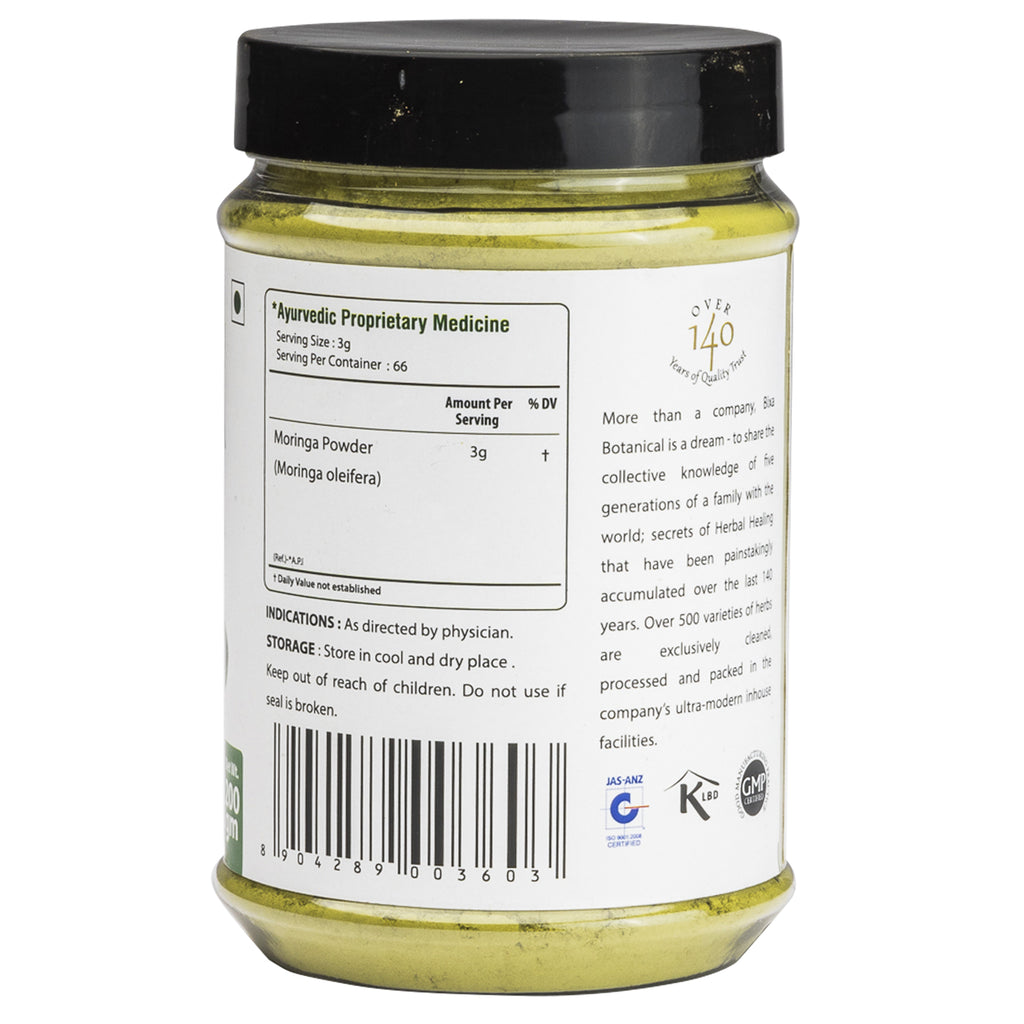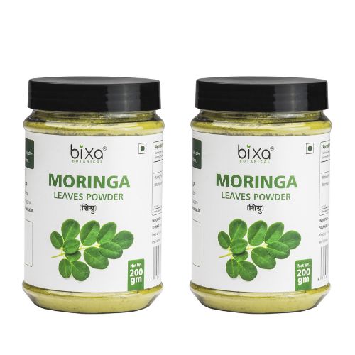 Moringa (commonly known as drum stick, Shigru/ Sahinjan, botanical name – Moringa oleifera) is a plant that is native to the sub-Himalayan areas of India, Pakistan, Bangladesh, and Afghanistan. It is also grown in the tropics. The leaves, bark, flowers, fruit, seeds, and root are used to make medicine. Ayurveda mentions that it is useful in pacifying Vitiated kapha/vata, promotes adequate blood flow to heart muscles & low blood lipid levels. Ayurveda says, by virtue of its properties of Tikshna & Ushna it supports healthy digestion and non accumulation of waste materials, toxins & fat cells. As mentioned in ancient texts Moringa leaves have special effects on relieving pain by virtue of its Vata reducing properties and anti-inflammation action. Moringa Leaf supports impressive range of medicinal uses with high nutritional value (rich in essential amino acids, vitamins, potassium, calcium, iron etc) and promotes overall health & vitality due to its anti-oxidants, alkalizing properties. Moringa leaves are a good vegetarian source of Vitamins, phyto nutrients and dietary fibre which supports strength & energy. The Scientific results indicate that Moringa has high Nutritional value with multi-vitamins, phyto nutrients, supports low blood triglycerides & cholesterol levels beneficial for Heart, Blood circulation & healthy weight management.