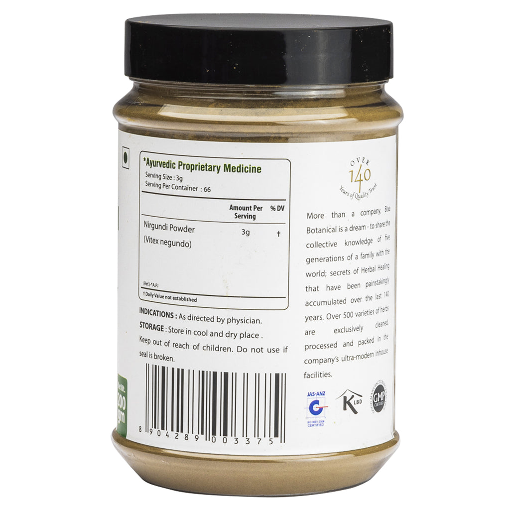 As per Modern usage Nirgundi Leaves Powder is found to be effective when applied with warm water to rheumatic swellings of the joints and in sprains. The warm infusion of the Nirgundi leaves is found to be useful for cleansing & healing ulcers faster. Smoke from Nirgundi dried leaves Powder helps to relieve catarrh and headache. NIrgundi is also found effective against cough, phlegm expulsion and fever due to various infections.