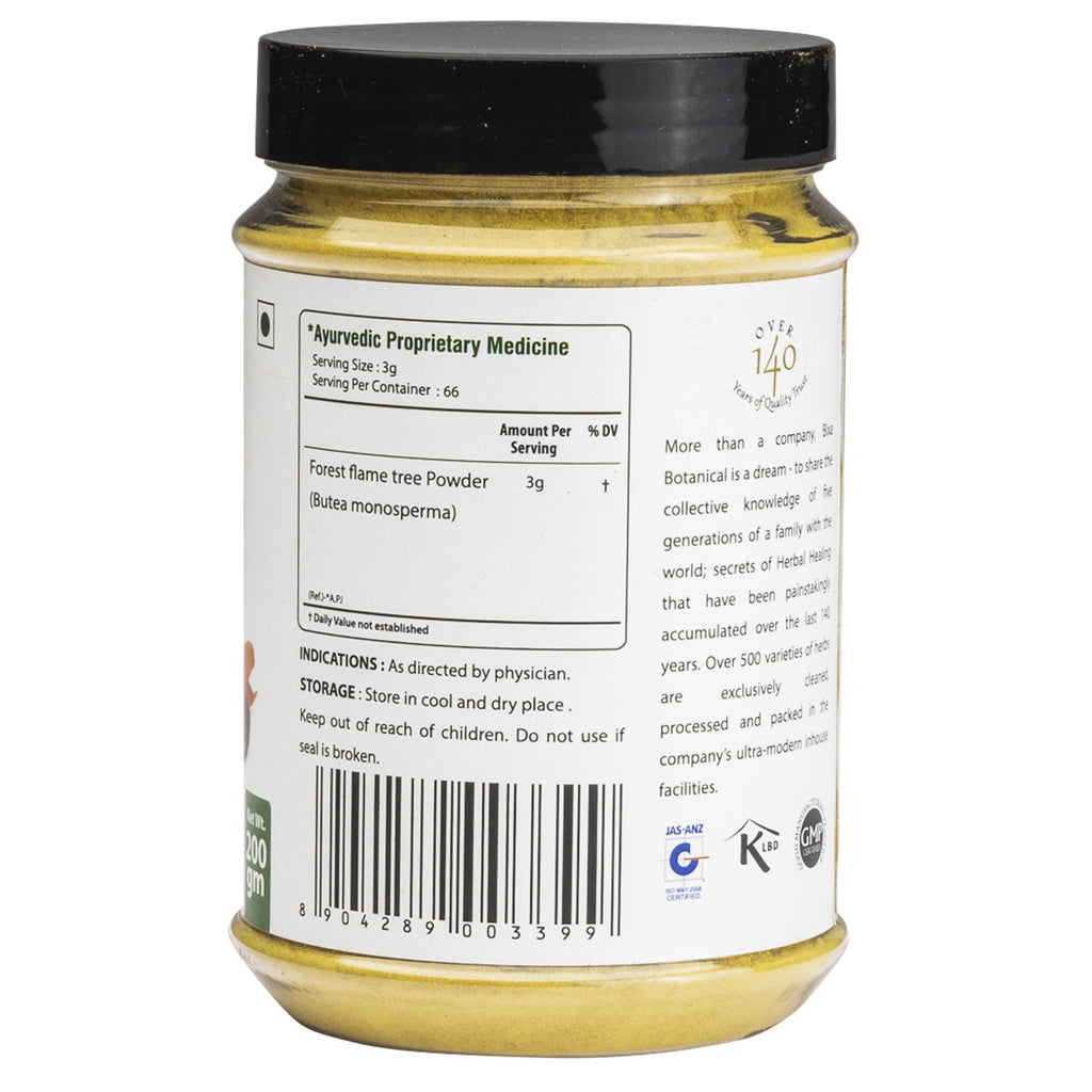 Palash/ Kimsuka/ Bengal kino/ Forest Flame tree [Botanical Name: Butea monosperma] is a deciduous, Sacred tree whose flowers, seeds, bark and gum are used for medicinal purpose. Palash is found in Mountainous districts of India extending in the North West Himalayas, common all over Bengal and southern India and also in Burma. Palash flowers are used to prepare natural colour which is used to celebrate Indian Festival Holi and the tree is worshipped as God of Fire! In tribal areas, women use the flowers to adorn themselves. Palash flowers are believed to have religious value and are used in havan or yagna religious ceremonies. As per Ayurveda Bengal Kino is Bitter, astringent, cooling in action and helps to pacify aggravated Pitta & Kapha. Palash Powder when taken regularly helps to reduce heat in the body, improve urinary bladder functions and detoxify blood. Palash supports blood & skin purification when taken with Cumin water. Palash helps to pacify stomach, pelvis burning sensation & extra thirst. A decoction of Palash Powder with coriander supports removal of uric acids from Urine and storage in the joints. Externally – Palash flower Powder boiled in water & applied as hot poultice helps to reduce joint inflammation & pain.