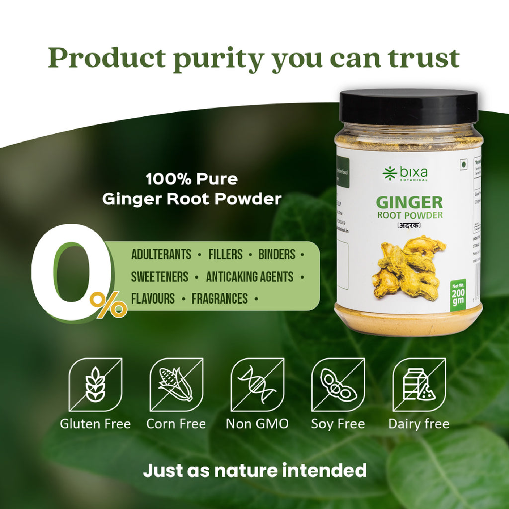 Ginger is also useful in common cold & cough, where there is immunity suppression & fever sets in. Ginger promotes removal of extra phlegm from bronchus and respiratory tract & helps to reduce symptoms of acute bronchitis/ Sinusitis and headache/ body ache. On long term basis Suntha/Ginger is helpful as hot water infusion drink like herbal tea in evening to relieve symptoms of Rheumatic conditions like joint heaviness, pain and warmness etc. The Ginger herbal tea when consumed regularly supports as anti-oxidants, helps to remove blockages from blood vessels and re-energise lungs to get more Oxygen level. Ginger Powder combines with black pepper Powder (kali miri) & pippali Powder (piper longum) (collectively known as Trikatu Powder ), which act as carminative & increase Bio-availability of the drug given along Trikatu.