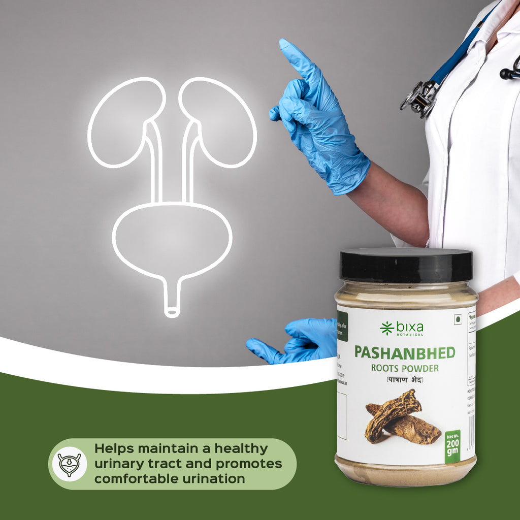 Scientific study of Pashanbhed has shown presence of Bergenin, glycosides, tannins, beta-sitosterol, gallic acid, glucose etc. Bergenin is the principle constituent of the plant Saxifraga ligulata. It is been found that Bergenin supports anti-inflammatory, fever reducing, immunity stimulant, high sugar control and antioxidant properties. Research study of Pashanbhed whole plant also showed promising activities like calcium oxalate monohydrate growth inhibition, calcium oxalate inhibition (which helps to reduce urinary stone occurrence), diuretic action and antioxidant effect.